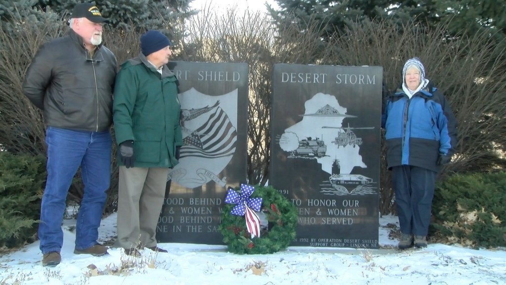 Today on the 27th anniversary of Operation Desert Storm, a remembrance ceremony took place in Wyuka Cemetery. Veterans who came laid a wreath on the desert shield.