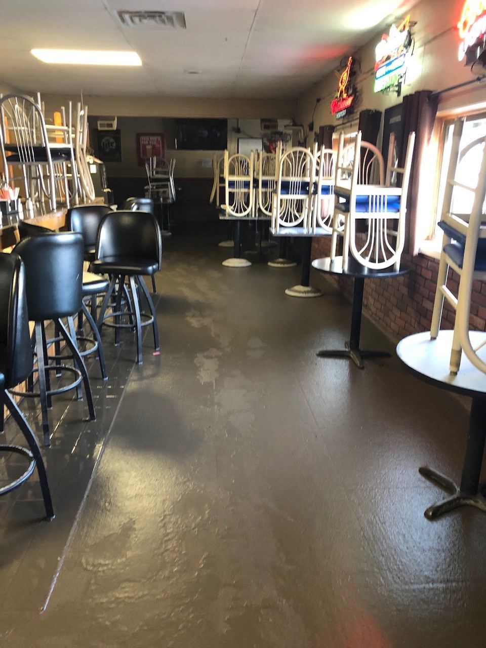 At CK’s, over 3 feet of water and over an inch of mud settled in the building causing over $100,000 in damage. The repair was long and dirty, but thanks to help from the community, CK was able to clean up and start over.