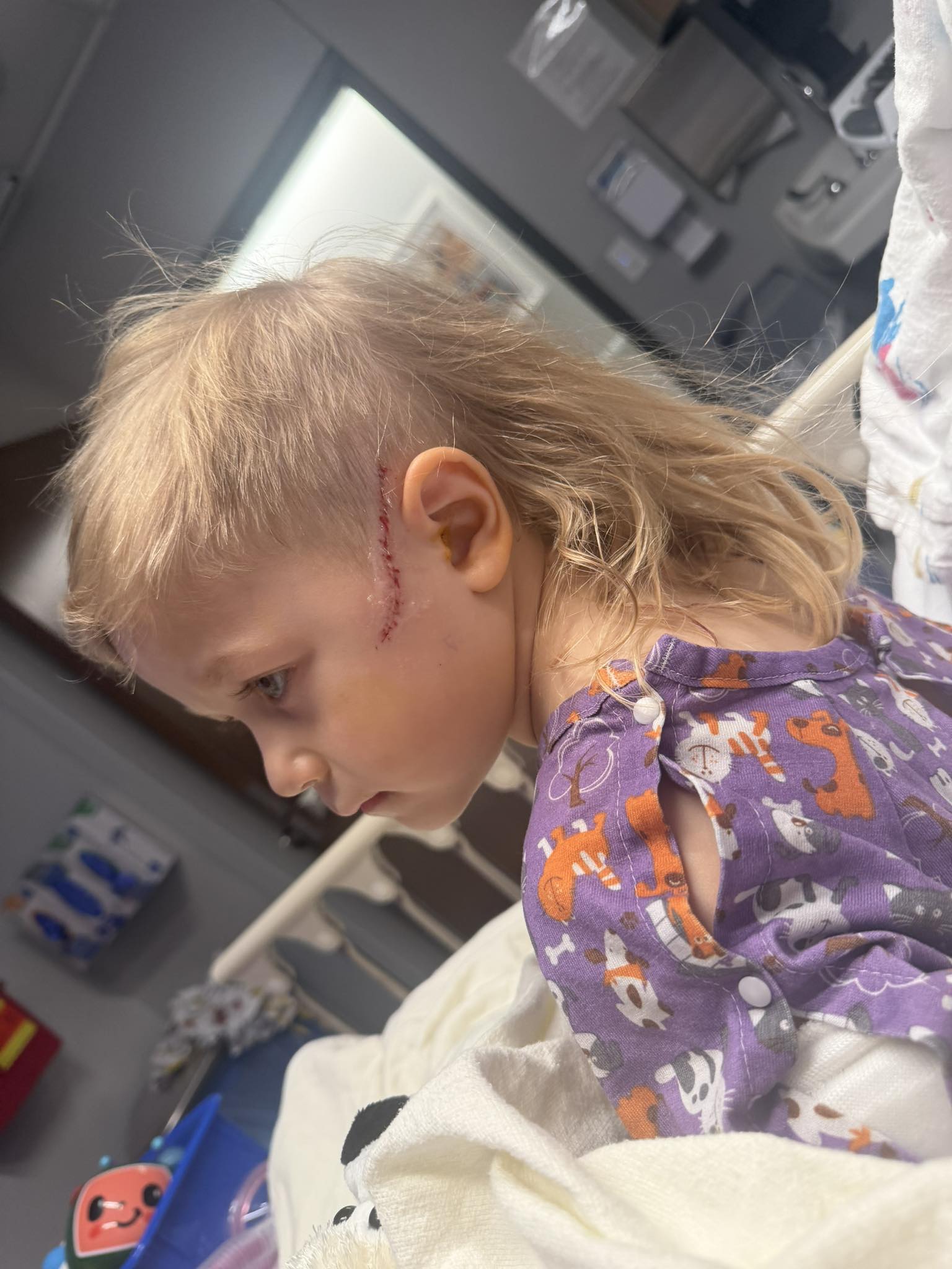 The child is being treated at Children’s Hospital for a “rather large laceration” across the left side of his face, said Gray. The boy also has a cut on his hand.