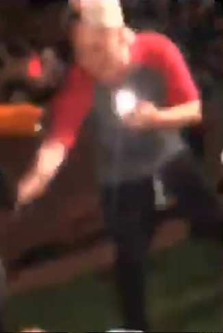 In the video, others in the group can be heard encouraging and cheering on the assault.