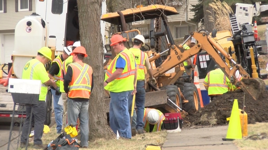 A gas line was hit on Deerwood Drive, north of 56th and Highway 2.