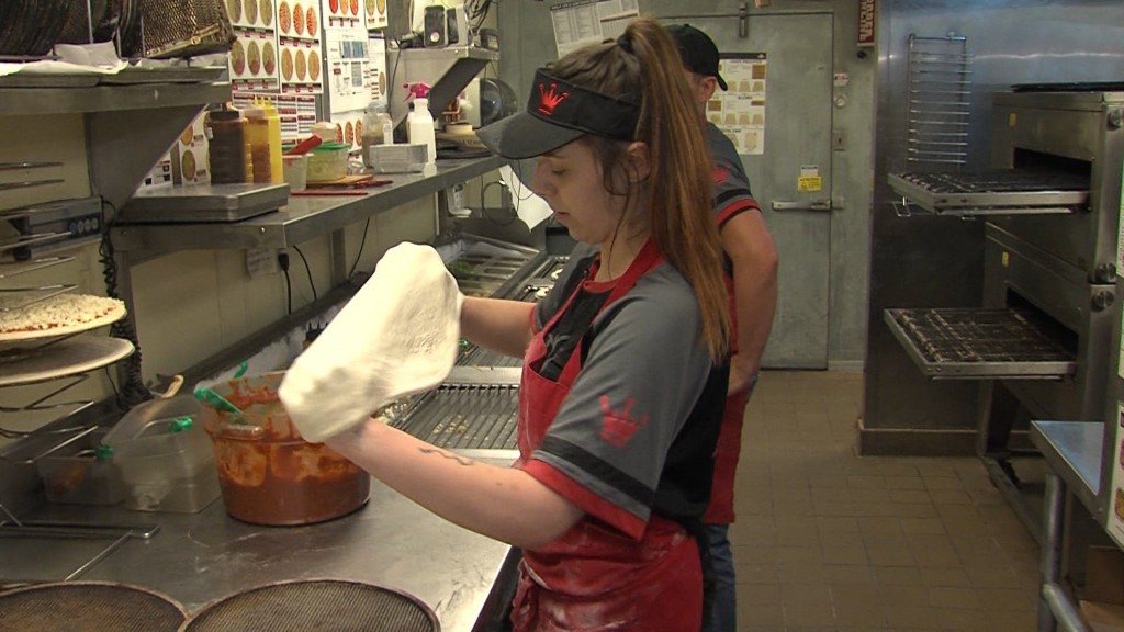 Vanderzee started delivering pizza for Toppers about two years ago. She kept getting promoted until she became general manager. Now, Vanderzee is making more than 100 pizzas a day, slinging skin all the way to the ceiling.