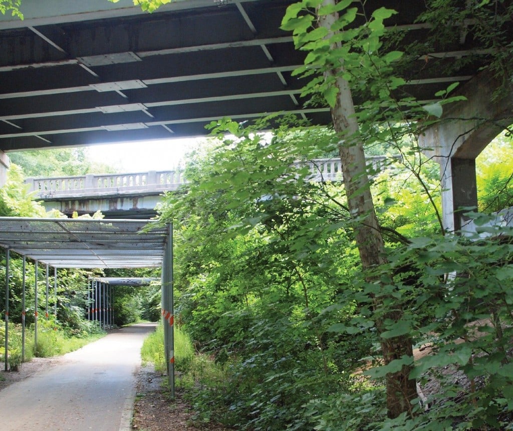 In addition to the construction of the bridges, the project involved drainage improvements. Three sections of rail from the original bridge were made into benches for the trail near Calvert Street. In the spring, trees will be planted to replace the ones removed for construction, and the landscaping will be completed.