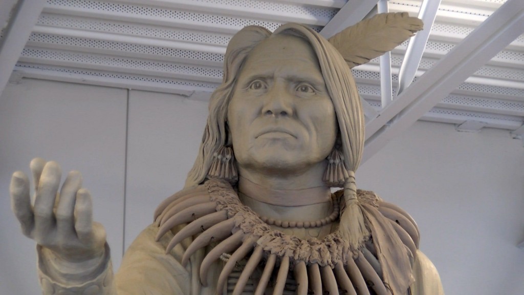 Victor is an artist in residence at the Boise State University in Idaho. He brought the clay model he’s going to use to cast the bronze sculpture to Lincoln, so the city can come and watch him work. He gathered inspiration from pictures of the chief himself, as well as other details from that time period.