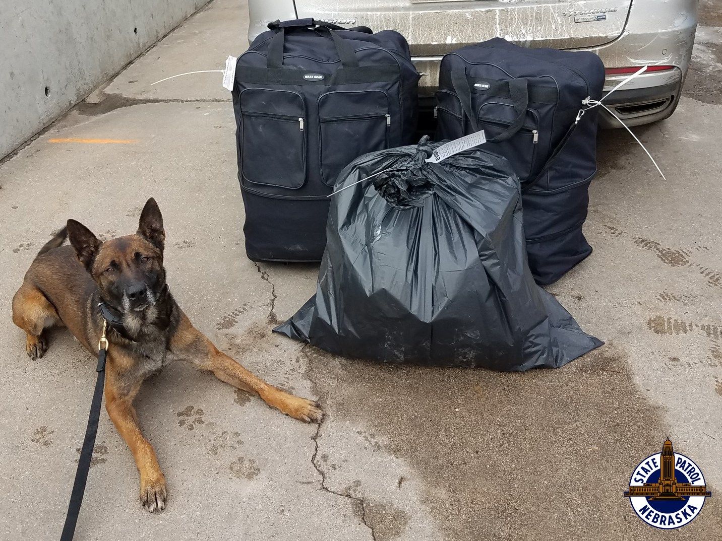 The first stop was on I-80 near Grand Island, where a K-9 unit detected an odor of marijuana coming from the trunk of a vehicle.
