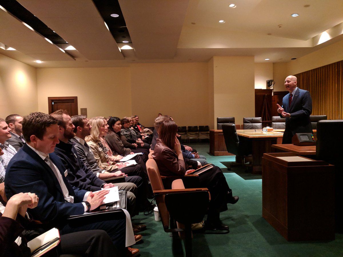 This photo was tweeted out by Lincoln Leadership (@Leader LNK).  It was government day for Lincoln Leadership.  Members of the community were able to meet with state senators, judges, city council members, and Governor Pete Ricketts to ask questions and gain insight on Nebraska government.