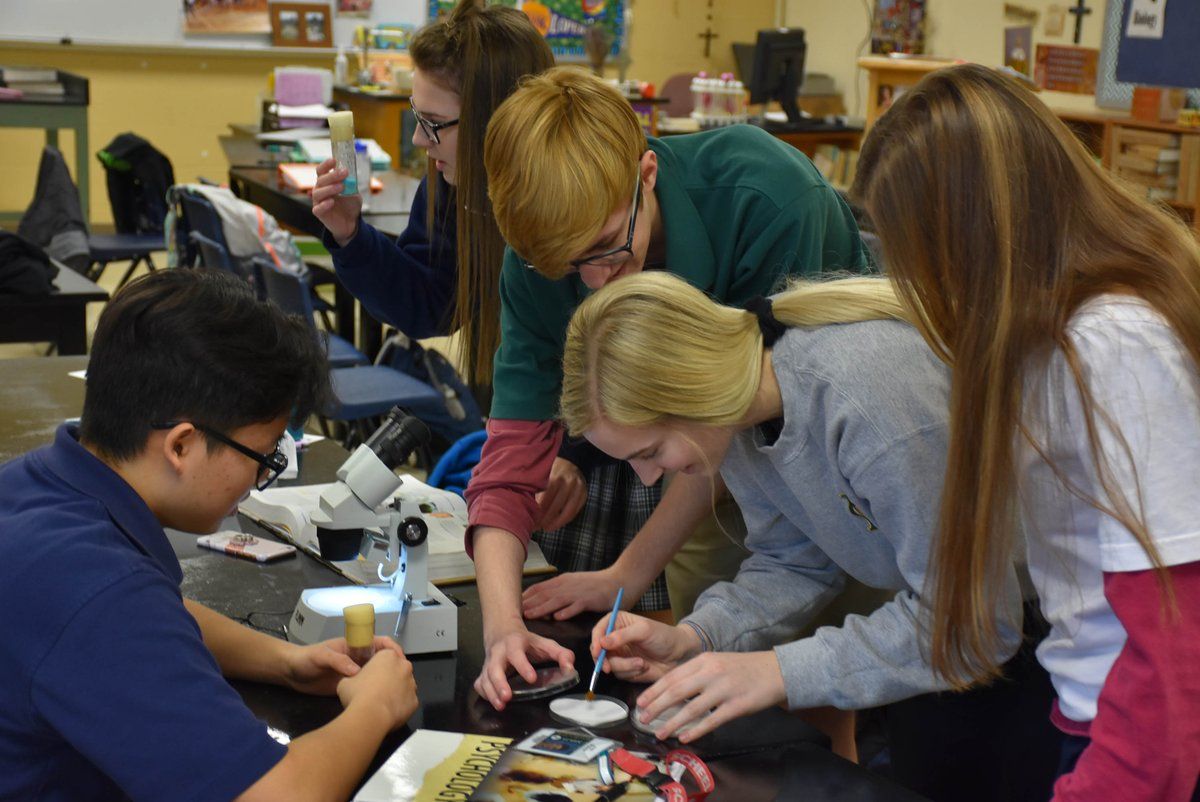 THIS CURIOUS BUNCH OF KIDS IS FROM Pius X High School. PiUS TWEETED out that THE A.P. bio students separated fruit flies in class as part of an experiment studying fruit fly genetics. They were supervised by their teacher, Ms. Susan Kelly.
