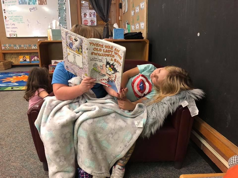 Finally, this sweet scene was captured at Beatrice Community Preschool. The picture is captioned, “Sometimes all you need in life is a friend and a good book.”