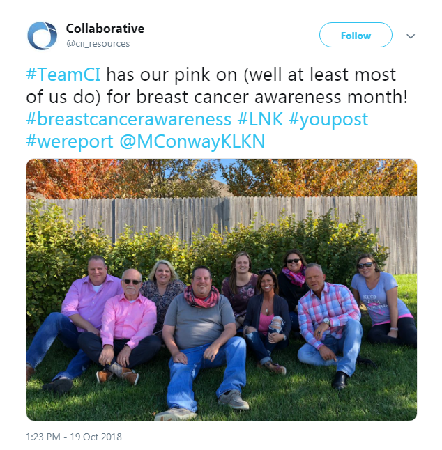 Team C.I. put their pink on for Breast Cancer Awareness month. The Collaborative Industries team posed for a picture to show their support this October.