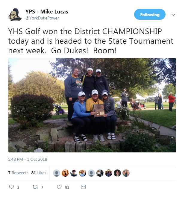 York High School Golf won the district championship and they’re headed to state!