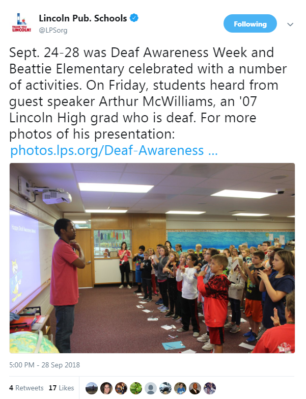 They heard from Arthur McWilliams, a 2007 Lincoln High Grad, who is partially deaf.